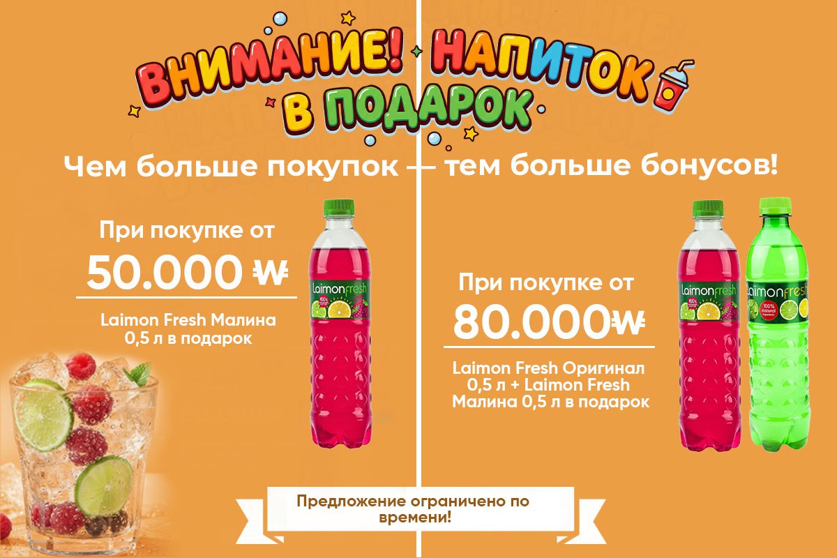 🛒 От 80 000₩ — Laimon Fresh Original 0,5 л + Berries 0,5 л в подарок!