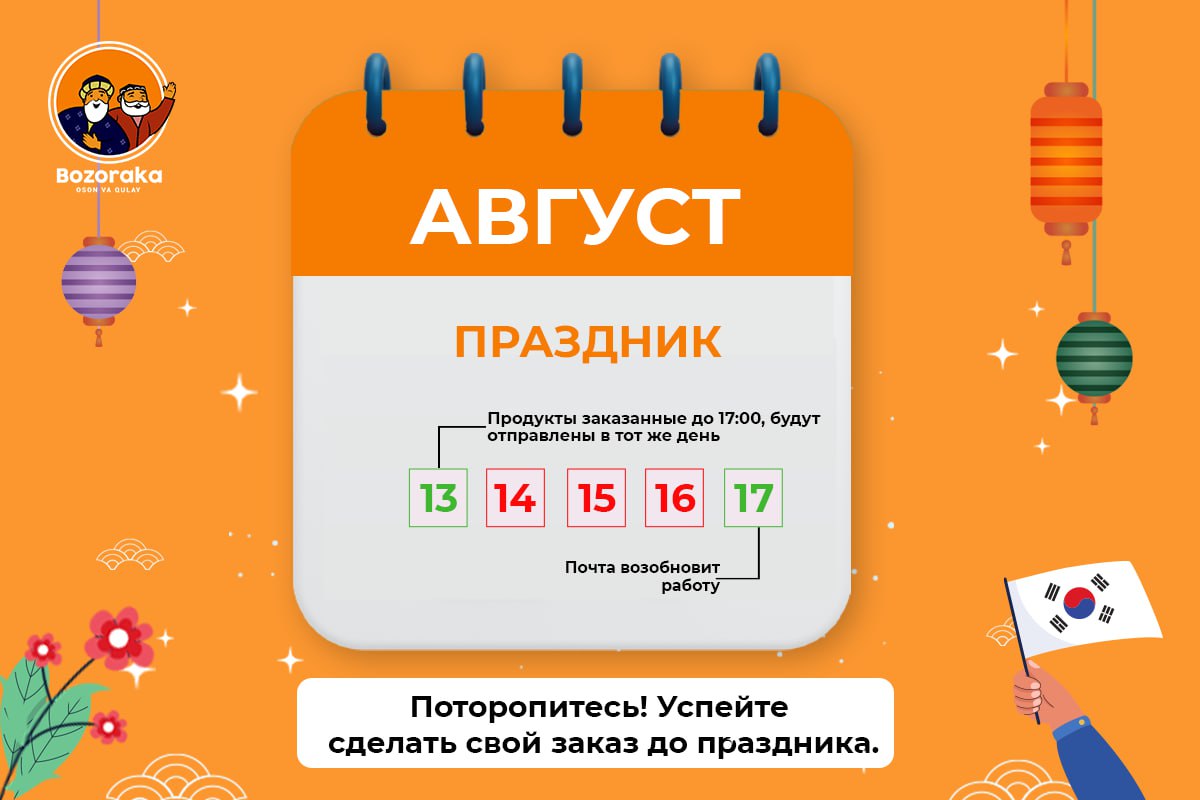 📌 В связи с предстоящим праздником в Корее график отправки заказов изменится: